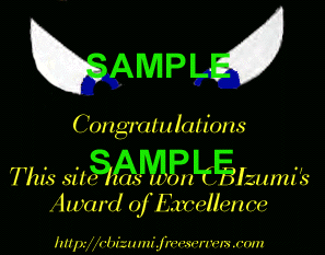 Here's where you can learn how to win my personal award. Whoopie :P All you have to do is e-mail me the URL of your site, your site name, and you name/alias. Then I'll come check out your site, and if I think it deserves an award, then you'll be e-mailed one! Then just link it back to my page, and you're done! Display KWCAP's award with pride!